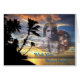 あなたの友人および家族を賛美する空でようである神のカップルKrishnaおよびRadhaとの熱帯日没の美しいカード。
