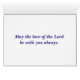 青い雪のカードは、正面の山のキャップを神祝福。内側読は「主の愛が常にあなた方と共にあるように」。 背読側は「信仰を持つ」 このカードは、Sやスマイルを必要とする賛美人、または彼らの生活の中で何かに苦しんでいる人に最適である。誰でも使え賛美る。