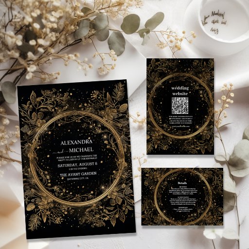 神秘的な天空の黒と金ゴールド結婚の エンクロージャーカード