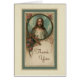 イエス・キリストの神聖なハートの美しいヴィンテージのイメージはバラ、数珠および十字とアクセントを置きました。