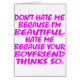 私が美しいので私を憎まないで下さい。 あなたのボーイフレンドがそう考えるので私を憎んで下さい。