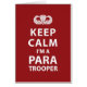 私によってがあずき色の背景および米国のジャンプ/パラシュートの翼を持つ落下傘兵である平静を保って下さい