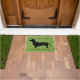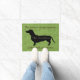 小さなダックスフントのユーモアで家にゲストを歓迎…「芝生は常に私のウィーナーの下で緑である」。