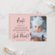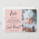 フォトガイモダンド親提案書カード。デザイン独身のは、明るいバラ金ゴールドの背景にベビーの写真、タイポグラフィスクリプト"叔母"とトレンディー書道レタリングのガイドの親の機能。名前とメッセージでさらにパーソナライズ。