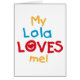 My Lola Loves私のTシャツ、カード、シール、ボディスーツのバッグなど、カラフル赤、黄色、青の文字とハートデザインと多くの。これらのローラ私のアパレルとギフトアイテムはローラスマイルを作る!