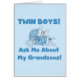 対の男の赤ちゃんの誇り高く新しい祖母は青いbassinetの2つのバニーを特色にするこのかわいく青いデザインを愛し、"読む青い文字は私の孫について私に!"尋ねます。