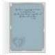 この青い挨拶状にヴィンテージの感じがあります。 それは図解入りの、写真付きのな詩を示します。 イラストレーションにスケッチし、色のハイライトがあります。 カードの内部に同じようなデザインがあり、詩の最後の詩を示し、そしてハートと図解入りの、写真付きのです。