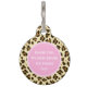 NewParkLane -ペットタグ、トレンディーヒョウ柄、おもしろい引用文付き: '彼女が飛び出す前に私の母に電話してください!'ピンクのラウンドフレームで。裏面には文字テンプレートがあり、名前と電話番号が分かる。Zazzleでカスタマイズデザインを簡単すパーソナライズされたる。すべての文字スタイル、色、およびサイズは、ニーズに合わせて変更できる。このコレクションをチェックして一致するアイテムをチェック!具体的な個人的なデザインの願い?感じお連絡楽に!