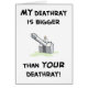 あなたの生命の邪悪な天才のためのおもしろTシャツのデザイン。 白い実験室によって塗られる邪悪な天才/気違いの科学者は彼の巨大なdeathrayの後ろに立ちます。 私のdeathrayあなたのdeathrayより大きいです!