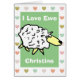 羊のおもしろい漫画カードは「私は愛する」と言う – パン。名前と内部メッセージを選択してパーソナライズ。バレンタインデーのカード。