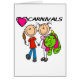 アメリカンドッグを持つ棒の姿の男の子および棒は"(ハートの)カーニバル" I愛カーニバルのTシャツ、マグ、トートバック、カード、ステッカーおよびあなたが名前か他の文字とカスタマイズことができる他のかわいい棒の姿項目を読む大きいぬいぐるみおよび文字を持つ女の子を計算します。