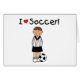 サッカーボールを持つサッカーの選手および子供は"私を(ハートの)サッカーが!"読む文字のスタイルを作ります サッカーのTシャツ、サッカーのマグ、カード、トートバック、および多く!