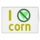 私はトウモロコシが嫌いだ。デザインは黄色の文字、緑のハート、国際的「NO」の記号を使用し読て、「私はコーンが嫌い」と言う。「ハート」しない人のために。