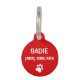 白い前足のプリントシルエットを特徴とするブラインドペット用の白と赤のラベル。片側には読「目が見えない」が、反対側にはペットの名前や電話番号のカスタマイズ可能な文字エリアがある。