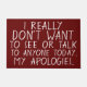 訪問者をいつほしいと思わないか使用するために玄関マットを捜していますか。 これは言うバーガンディのクールな色「謝罪の」引用文の玄関マットです: 「私は実際にだれでもに今日見るか、または話したいと思いません。 私の謝罪」。 大きく白い手紙。