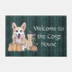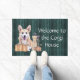 若い女の子およびコーギーの漫画を特色にする秋の玄関マットの私達のコーギーの子犬を持つあなたのゲストを歓迎して下さい。 www.zazzle.com/CorgiGifts著設計されている