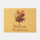 秋に最適なウェルカムマット、このデザインは美しい深い赤のフォントの下書に"Welcome"との秋の花束を備えている。その下にテンプレートを入れる。今日注文しろ!秋の花束のアートワーク作成者: https://www.etsy.com/shop/DesignsbyAnnaB