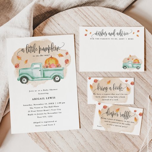 この美しいデザインは、背中にカボチャと台本の書道の見出しを持つ水色のファームトラックを備えている。テンプレート・型枠を使用して語句を追加する。フォントもし、スタイル、または色を変更する場合は、[詳細]を選択してアクセスする高度な編集メニュカスタマイズーを使用してください。
