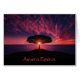 秋の分点(秋分点)カード。 木は枝の落日をつかまえるようです。