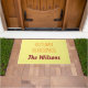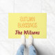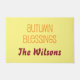 美しい秋をテーマにしたデザインは、おもしろいオレンジ色のフォントの"秋の恵み"と黄色の背景を示すこの。その下に美しいブルゴーニュ書ーレタリングの家族の名前がある。今日カスタマイズは枕を下さい