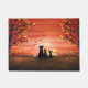 2匹のマットは秋の夕べの日没を見ることのシルエットを描きます。 明るく、鮮やかなオレンジ紅葉。 日没の方に飛んでいる落ちる紅葉を使って両側および鳥の2本の木を使って。 秋の景色の皮肉のためのドーナLegerによってできている元のアクリルの絵画の芸術は設計します。 複製権所有。