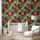 大きな素朴な果実と小さな赤とオレンジの果実は、この美しい離れ秋をテーマにした壁紙に緑ので散らばっている。一年中部屋に色を加える!