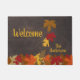 この秋のお迎えマットで家の入り口をカラフルに飾りなさい。 カエデとオ葉ークの秋が、地面に静かに置かれ、飛び込むに値する葉の山を作っている! 配色には、秋のシーズンレッド、オレンジ、ゴールドなどの色合いが含まれます。 背景は古い革に似擦り切れたている。この秋ドアを自分のドアにするには、ファミリ名を追加します。