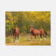 金紅葉の背景に対する2頭のクリの馬はこれに偽りなく特別な家のドア・マットをします。