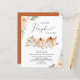 タイポグラフィエレガントとパステルフレンドリーオレンジ、テラコッタとクリームパンプキンとフローラブケットのハートのスワップと水の色を持つスクリプモダントで、「甘い小さなカボチャが途中にある」と予算の赤ちゃんシャワー招待。ベビーのもし性別を指定する(例:「彼の道に行く」)。