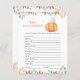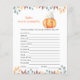 「カボチャが少し来た赤祝ちゃんシャワーパーティーをテーマにしたベビー漫画カボチャ!水の色かわいい漫画のかわいいカボチャ秋の帽子(キャップ)と紅葉。カードの裏側には紅葉がある。答え:クレービング、泣き叫び、おしゃぶり、ボトル、ナイトライト、子守唄、ベビーカー、硬膜外、バップ、ハイチェア、おむつバッグ、スワドル
