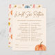 カボチャのテーマを持つ任意の赤ちゃんシャワーに楽し魅力的い追加。小さなカボチャの赤ちゃんシャワーに最適な、このゲームは秋の赤ちゃんシャワーお祝いにシームレスにフィット。その汎用性の高いデザインは、性別に依存しない集まりや、特定の男の赤ちゃんやベビーガールのシャワーに最適である。オレンジとブルーのカボチャのモチーフを取り入れたゲームよくはしゃぐは、ボホのカボチャの赤ちゃんシャワーを計画する人々にアピールし、季節のtouchを追加する。この魅力的な活動は、ゲストを楽しませて、あなたのlilカボチャのベビーシャワーのフェスティバル雰囲気を高める。