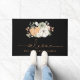 オレンジ色のカボチャ、セージ緑、白の3種類のカボチャと黒い背景に秋の緑を持つ素朴な秋フロントドアマット。あなたの家の秋や感謝祭の装飾に完璧な追加になる。タイポグラフィの文字「welcome」を特徴モダンとする。テンプレート・フィールドを使用して、情報とカスタマイズこの形式を追加する。連絡デザイもしナーの情報の追加に関するサポートが必要。