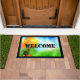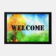 緑カラフル草、青空、もみじツリーと秋のウェルカムドアマット