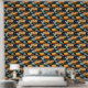 ダークブルーの背景にカラフルフローラパッチのオレンジ色のカボチャ。