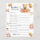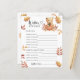 こ祝の秋でテディベアをテーマにした赤ちゃんシャワーパーティー!秋の紅葉に秋のカボチャが乗った水色の可愛いテディベア。カードの裏側には紅葉がある。一致する項目が使用可能。