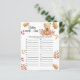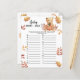 こ祝の秋でテディベアをテーマにした赤ちゃんシャワーパーティー!秋の紅葉に秋のカボチャが乗った水色の可愛いテディベア。カードの裏側には紅葉がある。