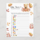 こ祝の秋でテディベアをテーマにした赤ちゃんシャワーパーティー!秋の紅葉に秋のカボチャが乗った水色の可愛いテディベア。カードの裏側には紅葉がある。一致する項目が使用可能。