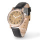 この女性の時計は、オレンジ、ブラウン、クリームのフィールドに緑の色合いの操作された正方形の幾何学的なデザインを持っている。同じもしデザインの色が違う欲しい。