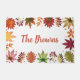 秋かわいらしシーズンの素朴な秋の収穫デザインで、茶色や黄色、緑などのアーストーンで手書きの紅葉を使用。自分のカスタマイズ名前や挨拶の名前。