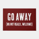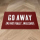 ようこそおもしろいの形式。フロントドアのウェルカムマットは、「行遠くに」も追加する「いいえ、実際ではない。いらっしゃいませ。」