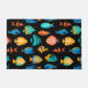 黒い背景に様々なカラフル熱帯魚のグラフィック、シームレスな繰り返しパターン