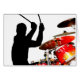 drumset、側面図に坐っているドラマーのクールな切り出しのイメージ。 ドラマーは空気の両方の棒との中間衝突でつかまえられました。 この版は無地のな黒のドラマーが付いている元の赤い日が差すことパターンでdrumsetを、示します。 ドラムファンまたはミュージシャンのためのすばらしいイメージ! カスタムなdrumsetのデザインのためのあなた自身の文字を加えて下さい!