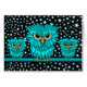フクロウの恋人、鳥類学者、鳥の恋人および鳥類捕獲人のためのかわいく、怒っている空腹なターコイズのフクロウの挨拶状、切手およびギフト。 星明かりの夜背景を持つ2羽のベビーのフクロウを持つママのフクロウ。 誕生日、クリスマスまたはのためのユニーク、カラフルクールなフクロウのギフト引き起こして下さい。 このフクロウのデザインはthreの異なった色で利用できます!