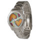 ピーチ、ピンク、オレンジのハートが上下に交互に並び、幸せな女の子ピンクの水疱を作成する。緑の輪郭が各ハートをトレースする。黄色淡い色ののドットはハート間の紙吹雪に似ている。水の色絵画は、金ゴールドとピンクの光の層を上に持っている。笑いハートは単語"感動的笑う"の詳細絵画である。愛のカスタマイズハートを作るあなたの個人的なメッセージや写真とデザインを見る。「it」ボタカスタマイズンを使用する。ハートアート素晴らしはパーソナライズされたカスタム腕時計のギフトだ!