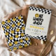 ヴィンテージモダンスマイリーフェイス白黒市松模様にファンキーカッコいい黄色レトロ