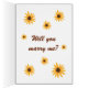 この黄色いヒマワリのデザインとのあなたへ第1であることを彼女(または彼を)知っています許可して下さい。 カードの前部は言います、私へ第1であり、1は色彩の鮮やかで黄色いヒマワリの整理からなされます。 の中で重要な質問は、結婚します私とあります。 黄色いヒマワリはカード中分散します。 あなたへのすべてのベスト。