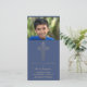 このエレガントと第モダン1聖餐式の招待状には、写真領域と金ゴールドクロスが図解入りの、写真付きの含まれる。特別なカスタマイズ宗教の大事な行事の文字が出来る。背景はネイビーブルー色だが、好みの色に変更できる。