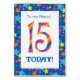 ジュディ・アダムソンのデジタルデザインから数ストライプの数と星を持つ友友のための明るい15番目の誕生日カード縁ど。内側のメッセージをもし変更できる。