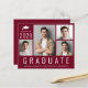 4つの写真の写真コラージュと大きな白い文字と彼のクラスの年、名前と学校や大学の白いタイポグラフィではフレンドリー、予算と燃える赤い卒業発表。