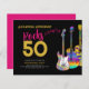 ロック50歳パーソナライズされたの誕生日パーティーのピンクブラックと金ゴールドの招待状と3つのウォータークールカラーのギターデザイン。カラフルパターンとホワイトピックガードを備えたエレキギター、数々のカラーのセミアコースティックギター、およびブラックと金ゴールドのタイポグラフィを備えたクラシックアコースティックサイケデリックギターアートイラストレーションを備えたエレキギタークール。このテンプレートを使用する簡単は、ロック祝ンのロールスタイルで50への完璧な招待を作成し、ギタリスト、ミュージシャン、音楽の愛好家に最適である。ギタープレーヤーは決してギターの数が多すぎないことを教えてくれる。このクールミュージカルモダン楽器デザインは、この素晴らしいミュージカル楽器の音楽エネルギーと50番目の誕生祝いをロックするための完璧な方法である。オリジナルのアートワークby artist Catherine Sweetman